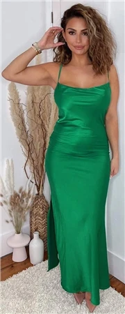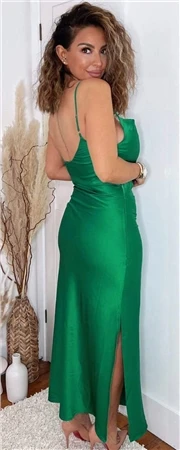 Ax Paris Jade Green Satin Cowl Neck Midi Dress