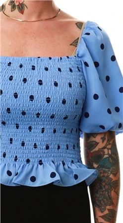 Brave Soul Blue Polka Dots Smock Top
