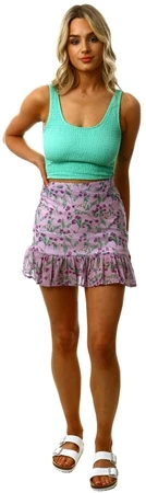 Cutie London Lilac Floral Print Frill Mini Skirt