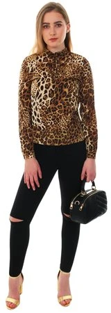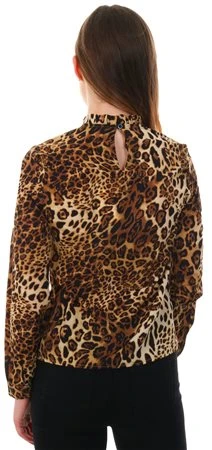 Fashion Union Animal Print Tie High Neck L/Sleeve Top