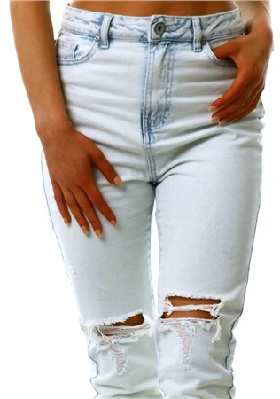Forever Denim Bleach Blue Ripped Knee Mom Jeans
