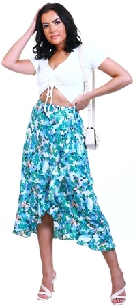 Girl In Mind Green/Blue Emily Frill Detail Wrap Skirt