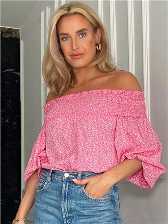 Get ready for the summer with this super cute Candace Shirred Bardot Pink Floral Top. Featuring balloon sleeves and a relaxed fit, this figure-skimming top can be paired with denim for the ultimate casual look
