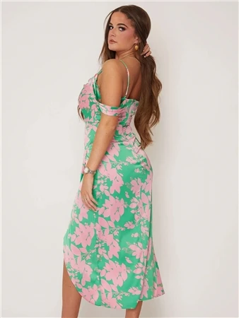 Girl In Mind Pink/Green Camila Floral Wrap Over Midi Dress