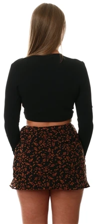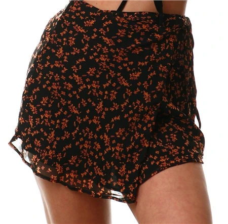 Glamorous Black / Orange Floral Wrap Tie Mini Skirt