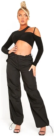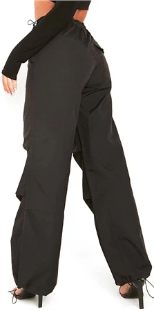 Missy Empire Black Samantha Parachute Cargo Pants