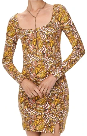 Neon & Nylon Toffee / Retro Print Long Sleeve Mini Dress