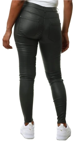 These black leather look trousers by ONLY are perfect for bringing a sense of rock chick to your look. The leather legs feature stylish texture panels. Team yours with one of our body tops and heels to complete the look.
