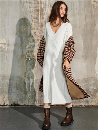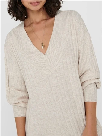 Only Grey / Pumice Stone Tessa Midi V Neck Knitted Dress