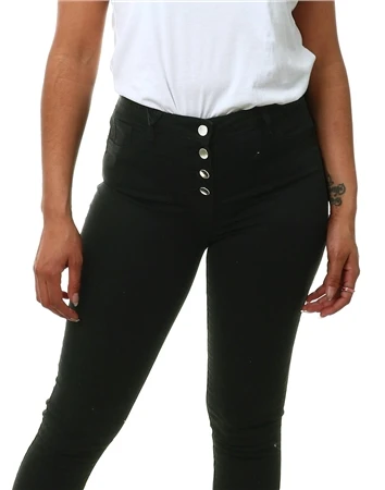 Parisian Black Button Up Detail High Waist Skinny Jeans