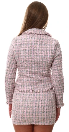 Parisian Pink Tweed Pearl Button Detail Frayed Edge Skirt