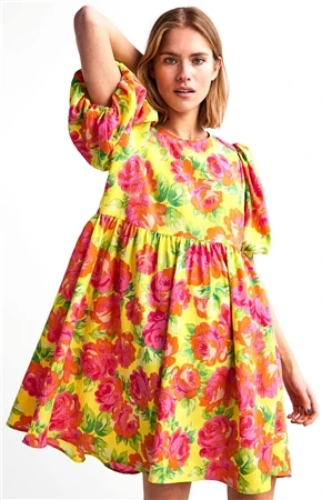 Pieces Golden Kiwi / Flower Asta Mini Dress