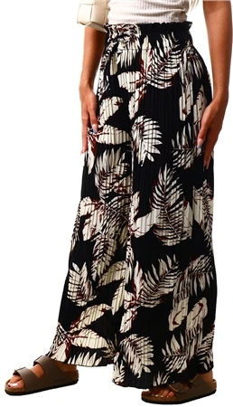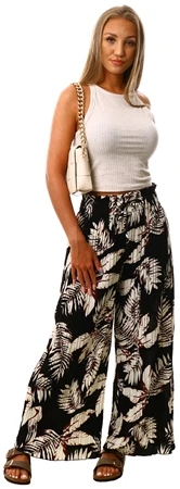 Qed Black Floral Pattern Pleat Wide Leg Trousers