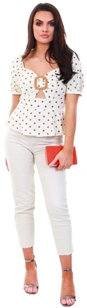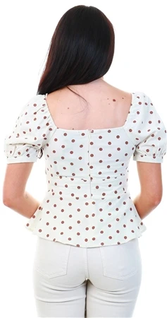 Qed Cream Mocha Polka Dot Buckle Puff Top