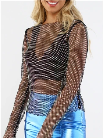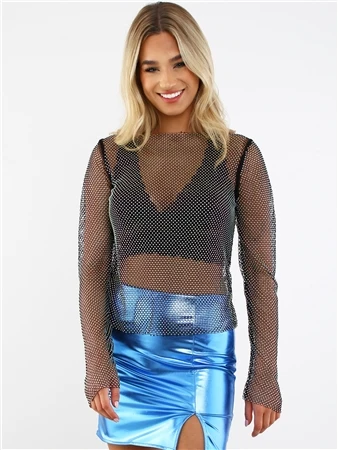 Make a statement with this chainmail mesh top featuring a black mesh material with a diamante finish. Perfect for the new season, night out with the girls!