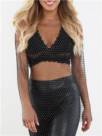 Make a statement with this mesh dress featuring a black mesh material with a diamante finish. Perfect for festival season, night out with the girls!