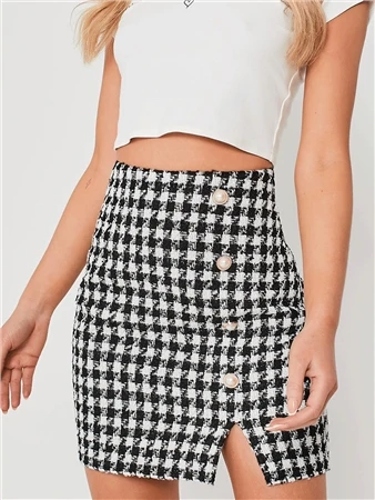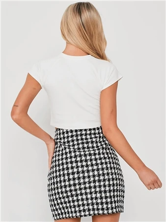 Saint Genies Black / White Houndstooth Tweed Skirt