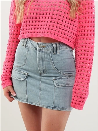 Make them stare this season in our beaut mini skirt! Featuring patch pockets and short length, it’s a staple for the upcoming season!