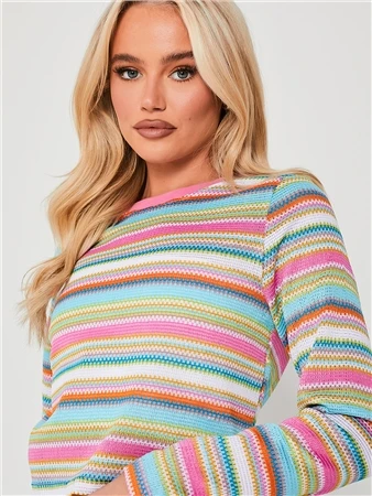 Saint Genies Pink Stripe Knit Long Sleeve Top