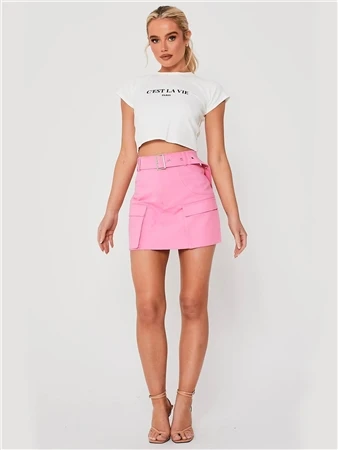 Make them stare this season in our beaut mini skirt! Featuring a belt, patch pockets and micro mini length, it’s a staple for the upcoming season!