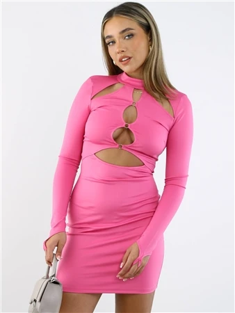 Give your wardrobe a serious upgrade with our Long Sleeve Cutout Mini Dress. Featuring cutout detail and a body con shape this dress is a must to add to your collection