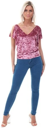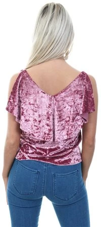 Style London Pink Velvet Look Cold Shoulder Top