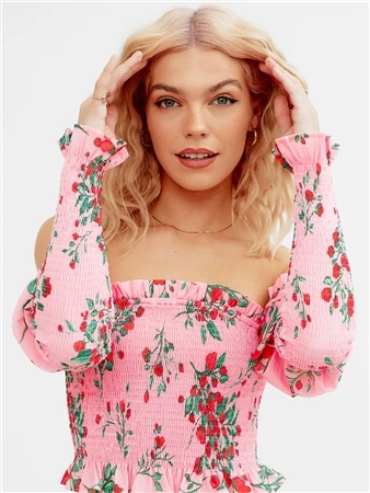 The Frolic Pink Patricia Ruffle Long Sleeve Cropped Top