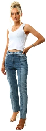Veromoda Blue / Medium Blue Denim High Waist Ankle Straight Fit Jeans